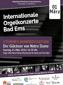 Internationales Orgelkonzert in der Pfarrkirche St. Martin Bad Ems "Der Glöckner von Notre Dame" Herzliche Einladung für den 01. März 2026 um 16:30 Uhr